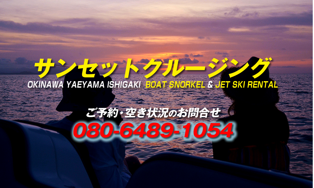 石垣港を出港後、日没前後に空が様々な色に変化する幻想的なマジックアワーをみながらの感動、贅沢なひとときをお過ごし下さい。